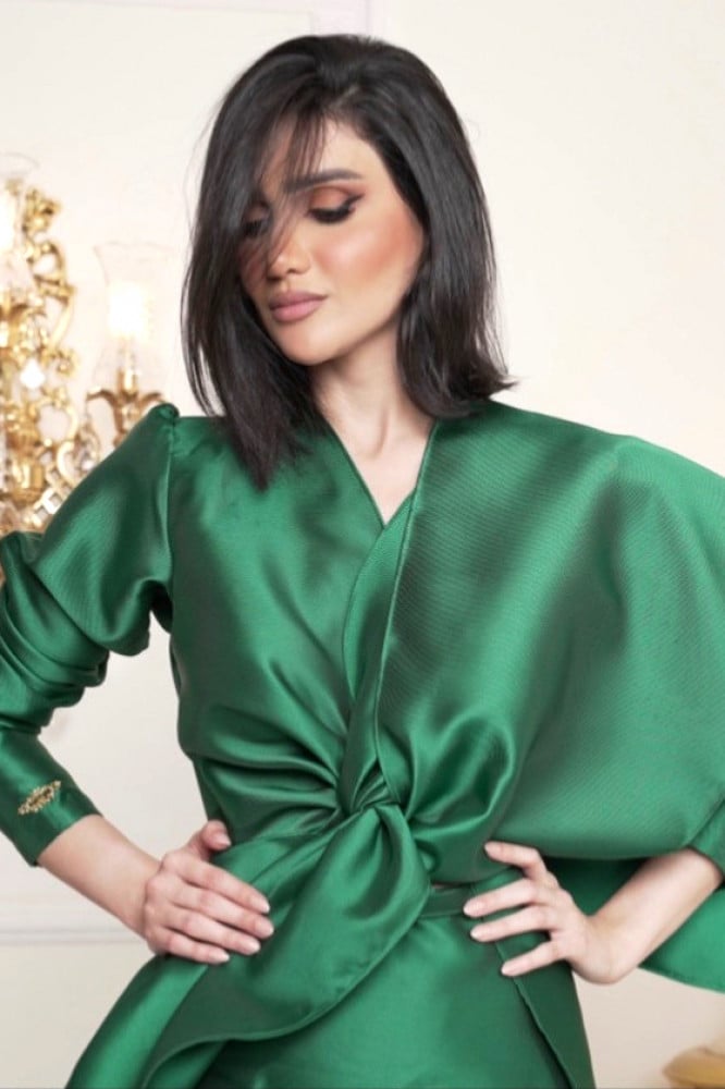 ( بلوزة بأكمام لها اكثر من حركة في اللبس مزينة بحزام، تفاصيل التصميم تجعلك سيدة الحفل ✨)