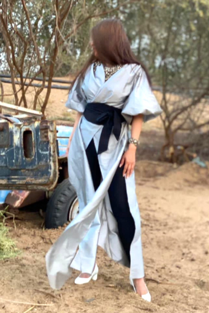 ( بلوزة بتصميم جميل جداً حرصت المصممة بأن تلبس بأكثر من طريقة من قماش التفته الفاتن وأكمام بوف✨)
