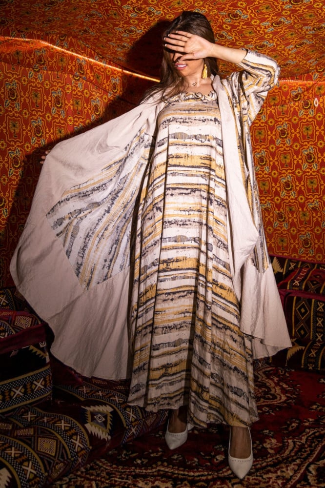 ( عباية باللون البيج وتدرجاته، تحتوي على جيوب في الأطراف ✨)