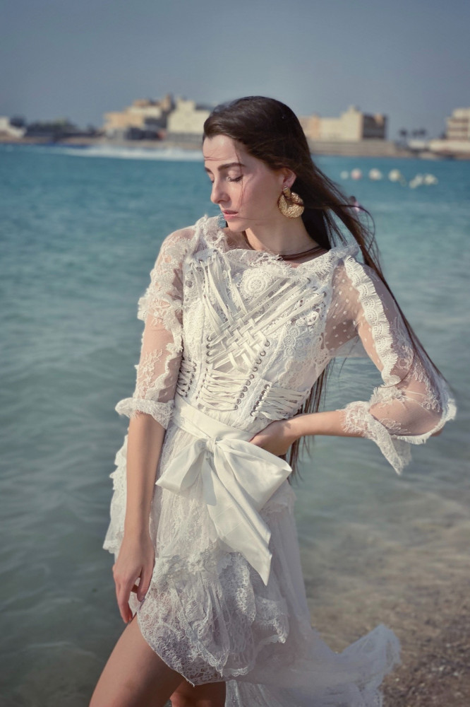 ( فستان صيفي بقماش دانتيل و تل منقط، كم طويل ومن الخلف أطول قليلاً حتى يعطي جمال للقطعه ✨)
