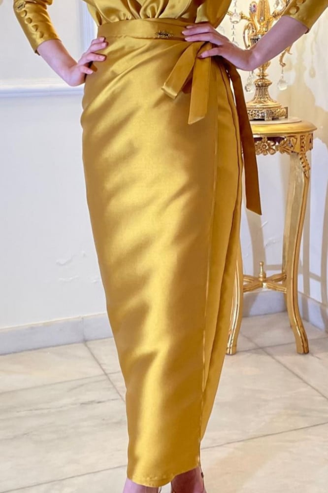 • مكون من 3 قطع: جاكيت و تنورة لف و حزام