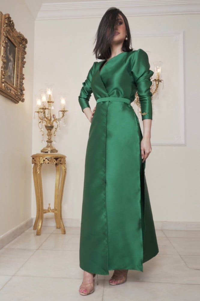 ( بلوزة بأكمام لها اكثر من حركة في اللبس مزين بحزام مع تنورة راقية، تفاصيل التصميم تجعلك سيدة الحفل ✨)