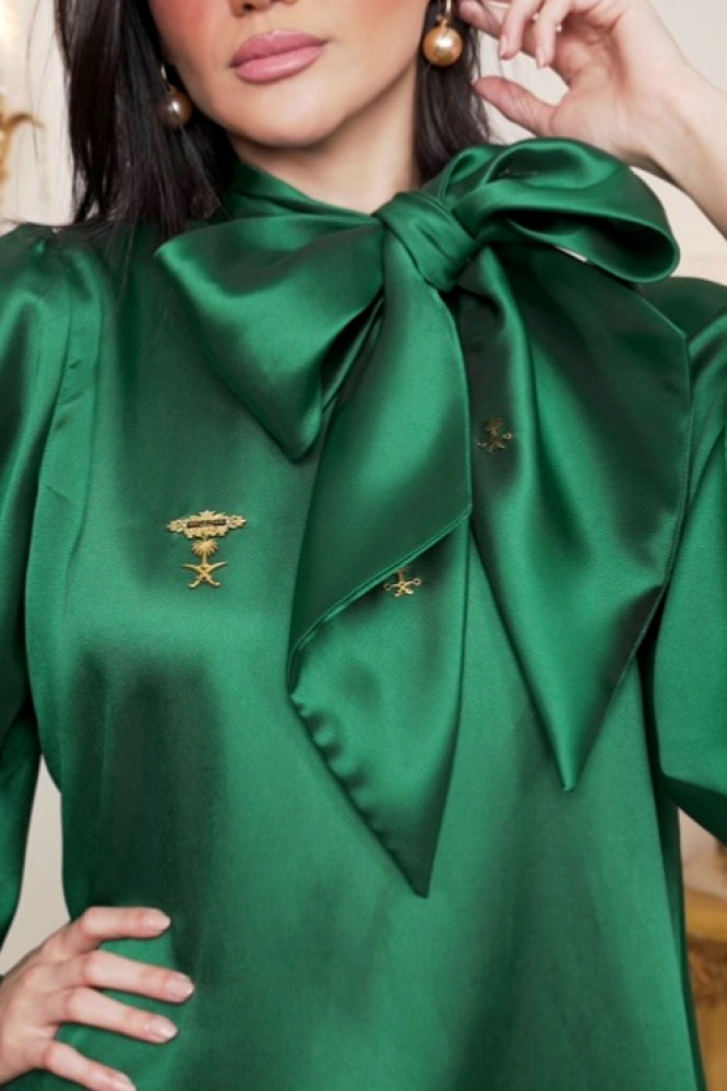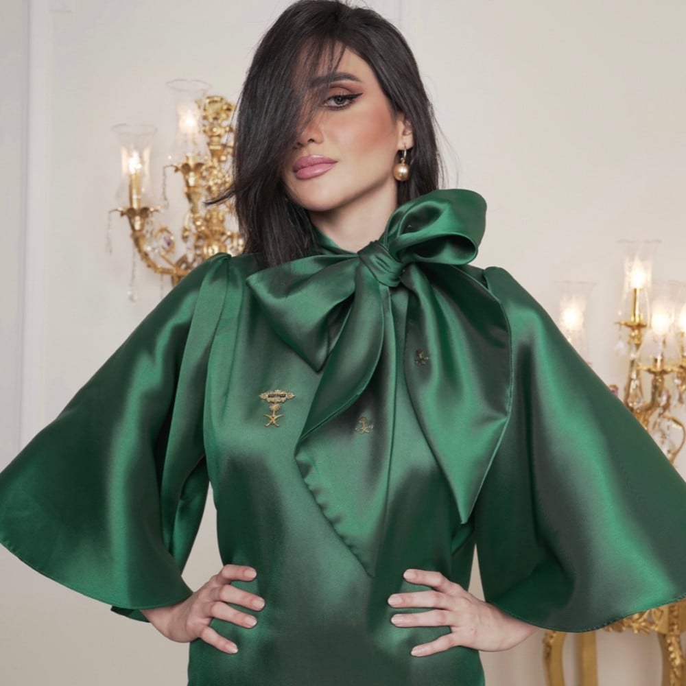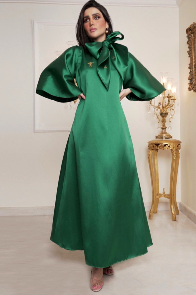 ( فستان فاخر مزين بعقدة فيونكة من الرقبة, تفاصيل التصميم تجعلك سيدة الحفل ✨)