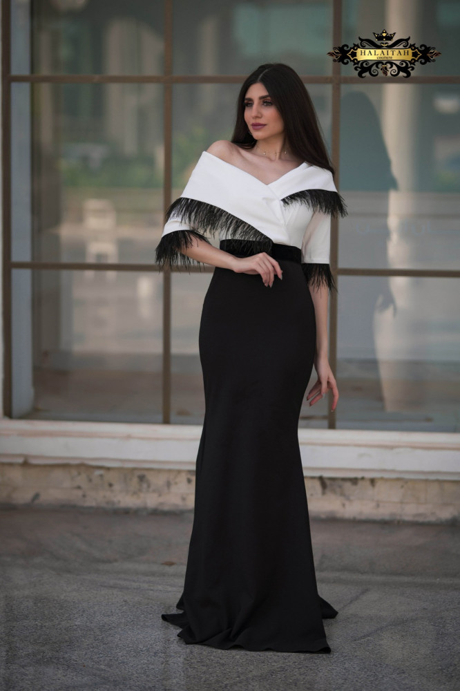 ( فستان ماسك متناسق مضاف اليه كُلفه من جهة الصدر والأكمام حتى يعطي شكل جذاب ✨)