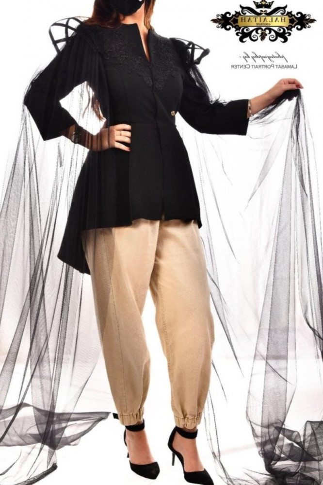 ( جاكيت رسمي بنقوش من جهة الصدر وتصميم مميز من الأكتاف يعطي مظهرك مزيداً من الجمال ✨)